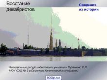 Восстание декабристов Сведения из истории Электронный ресурс подготовлен