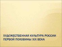 ХУДОЖЕСТВЕННАЯ КУЛЬТУРА РОССИИ ПЕРВОЙ ПОЛОВИНЫ XIX ВЕКА