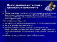 Инвентаризация имущества и финансовых обязательств Инвентаризация проверка