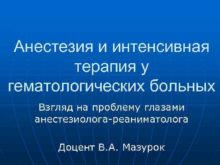 Анестезия и интенсивная терапия у гематологических больных Взгляд