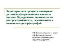 Характеристика процесса овладения детьми орфографическим навыком письма Определение