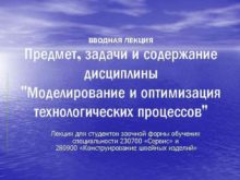 ВВОДНАЯ ЛЕКЦИЯ Предмет задачи и содержание дисциплины Моделирование