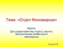 Тема Отдел Моховидные Задачи Дать характеристику отделу изучить