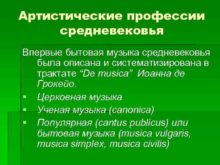 Артистические профессии средневековья Впервые бытовая музыка средневековья была