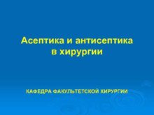 Асептика и антисептика в хирургии КАФЕДРА ФАКУЛЬТЕТСКОЙ ХИРУРГИИ