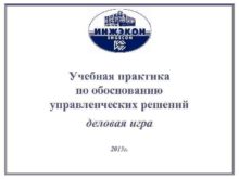 Учебная практика по обоснованию управленческих решений деловая игра