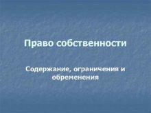 Право собственности Содержание ограничения и обременения Право