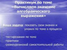Практикум по теме Вычисляем значение алгебраического выражения Ваша