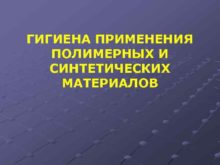 ГИГИЕНА ПРИМЕНЕНИЯ ПОЛИМЕРНЫХ И СИНТЕТИЧЕСКИХ МАТЕРИАЛОВ Использование