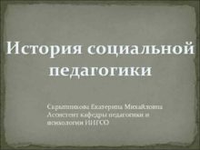 История социальной педагогики Скрыпникова Екатерина Михайловна Ассистент кафедры