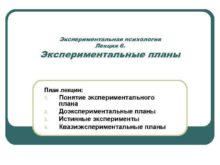 Экспериментальная психология Лекция 6 Экспериментальные планы План лекции