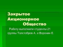 Закрытое Акционерное Общество Работу выполнили студенты 21 группы