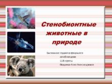 Стенобионтные животные в природе Выполнила студентка факультета лечебное