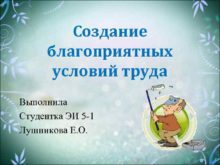 Создание благоприятных условий труда Выполнила Студентка ЭИ 5