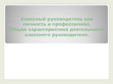 Классный руководитель как личность и профессионал Общая характеристика