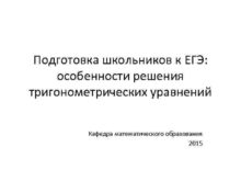 Подготовка школьников к ЕГЭ особенности решения тригонометрических уравнений
