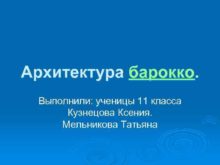 Архитектура барокко Выполнили ученицы 11 класса Кузнецова Ксения