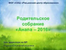 МОУ СОШ Рахьинский центр образования Родительское собрание Анапа