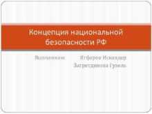 Концепция национальной безопасности РФ Выполнили Ягфаров Искандер Загретдинова