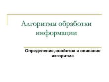 Алгоритмы обработки информации Определение свойства и описание алгоритма