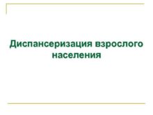Диспансеризация взрослого населения Нормативно-правовая база медицинской профилактики