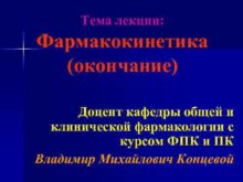 Тема лекции Фармакокинетика окончание Доцент кафедры общей и