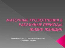 МАТОЧНЫЕ КРОВОТЕЧЕНИЯ В РАЗЛИЧНЫЕ ПЕРИОДЫ ЖИЗНИ ЖЕНЩИН Выполнила