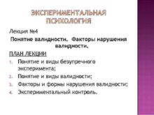 ЭКСПЕРИМЕНТАЛЬНАЯ ПСИХОЛОГИЯ Лекция 4 Понятие валидности Факторы