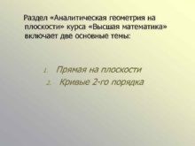 Раздел Аналитическая геометрия на плоскости курса Высшая математика