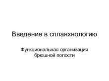 Введение в спланхнологию Функциональная организация брюшной полости