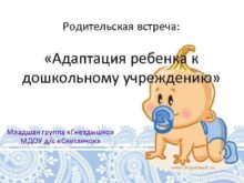 Родительская встреча Адаптация ребенка к дошкольному учреждению Младшая