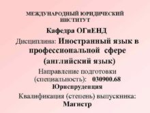 МЕЖДУНАРОДНЫЙ ЮРИДИЧЕСКИЙ ИНСТИТУТ Кафедра ОГи ЕНД Дисциплина Иностранный