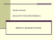 Кафедра экономики МАКРОЭКОНОМИКА Кредитно- денежная политика Кредитно-