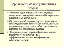 Вероятностные ситуационные теории n Главная идея ситуационного подхода