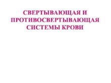 СВЕРТЫВАЮЩАЯ И ПРОТИВОСВЕРТЫВАЮЩАЯ СИСТЕМЫ КРОВИ Функции этих