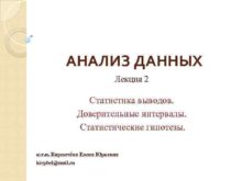 АНАЛИЗ ДАННЫХ Лекция 2 Статистика выводов Доверительные интервалы