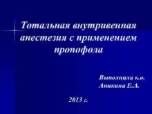 Тотальная внутривенная анестезия с применением пропофола Выполнила к
