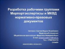 Разработка рабочими группами Морпортэкспертизы и МКВД нормативно-правовых документов