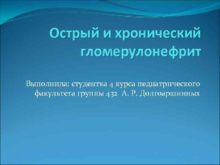 Острый и хронический гломерулонефрит Выполнила студентка 4 курса