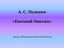А С Пушкин Евгений Онегин Автор Шалманова Елена