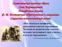 Символическое значение образа Сони Мармеладовой Полифонизм романа Ф