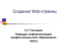 Создание Web-страниц Н Г Гончарик Кафедра информатизации профессионального