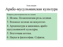 Тема лекции Арабо-мусульманская культура Вопросы рассматриваемые на лекции