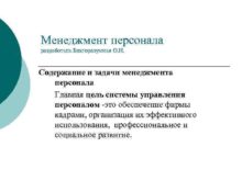Менеджмент персонала разработала Благоразумная О Н Содержание и