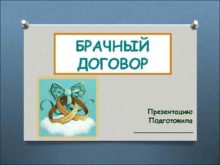 БРАЧНЫЙ ДОГОВОР Презентацию Подготовила _______ Брачный контракт