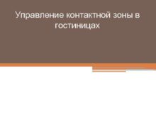 Управление контактной зоны в гостиницах Основные понятия