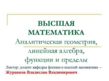 ВЫСШАЯ МАТЕМАТИКА Аналитическая геометрия линейная алгебра функции и