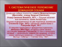 1 СИСТЕМАТИЧЕСКОЕ ПОЛОЖЕНИЕ ДОМАШНЕЙ СОБАКИ Домашняя собака относится