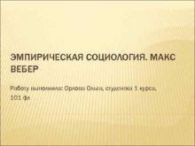ЭМПИРИЧЕСКАЯ СОЦИОЛОГИЯ МАКС ВЕБЕР Работу выполнила Орлова Ольга