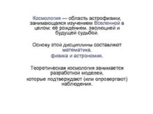 Космология область астрофизики занимающаяся изучением Вселенной в